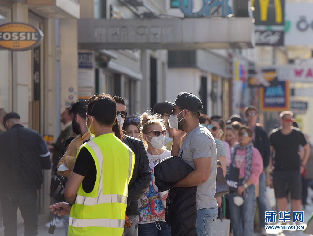 奥地利首都维也纳从4月1日至11日采取封禁措施,其中包括关闭零售业商店等,不少民众选择在封禁前一日外出购物。