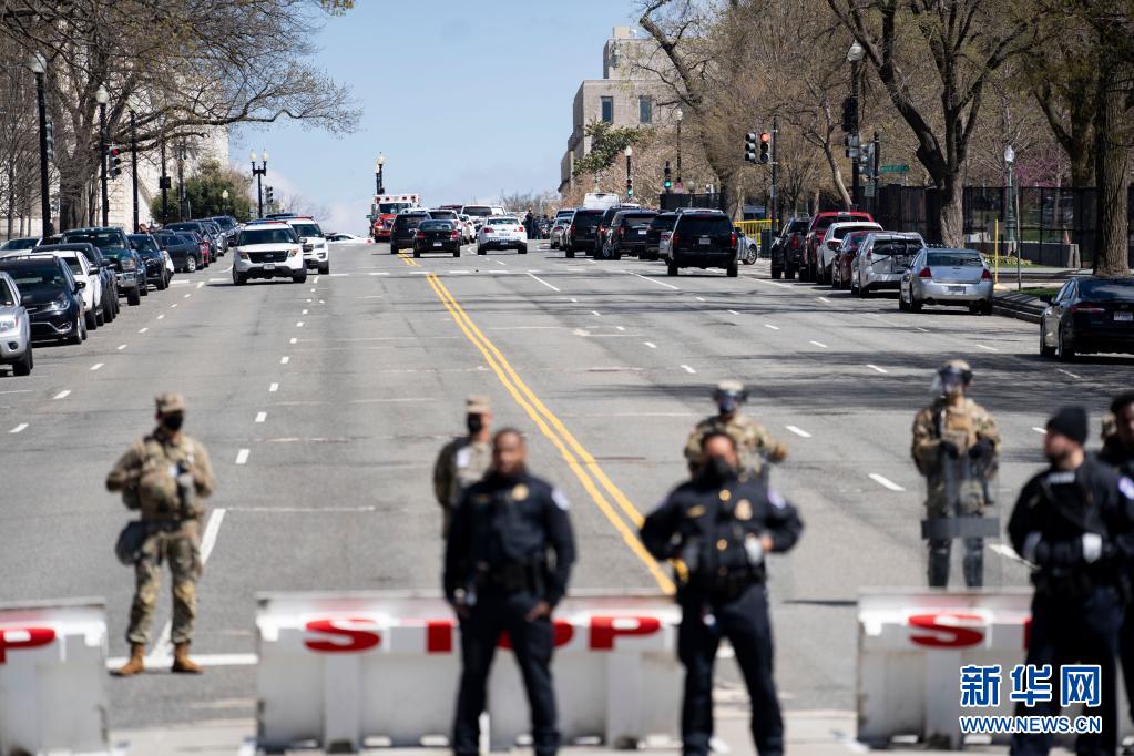 4月2日,美国国民警卫队队员和警察在华盛顿国会附近警戒。
