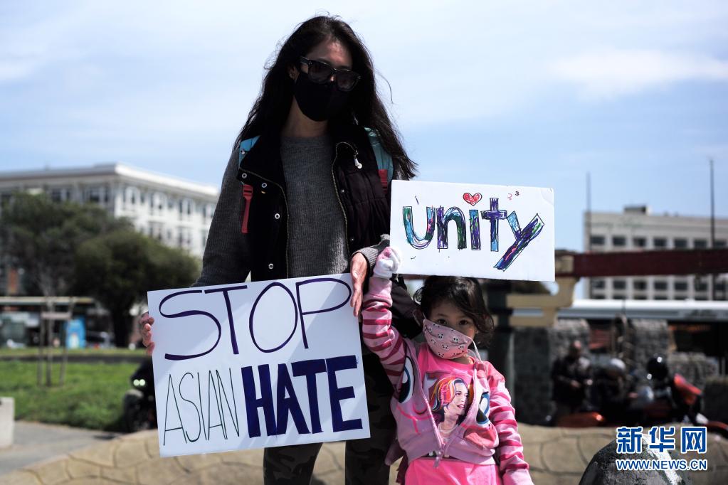 当日,美国加利福尼亚州旧金山湾区城市奥克兰民众举行集会抗议针对亚裔的歧视行为和仇恨犯罪。