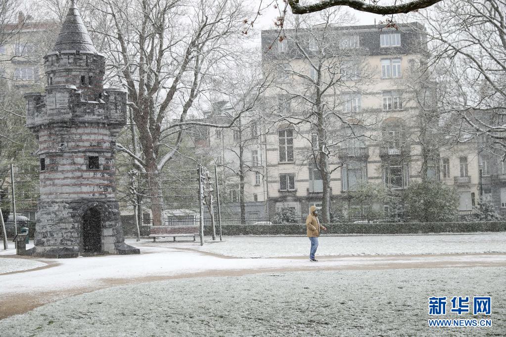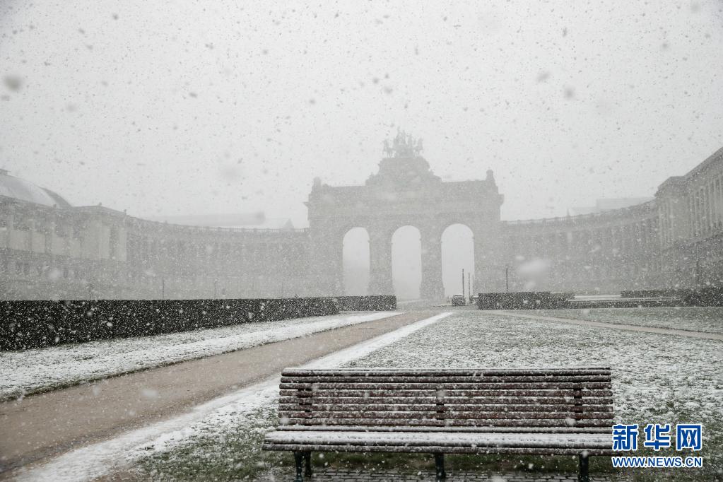 这是4月5日在比利时布鲁塞尔拍摄的雪景。 近日,比利时迎来降温降雪天气。春日大雪,景色蔚为壮观。 新华社记者 张铖 摄