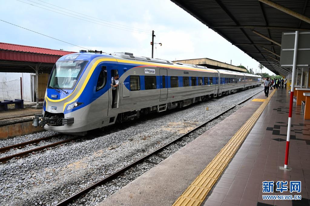 4月11日,在马来西亚吉兰丹州首府哥打巴鲁,一列动车组列车驶入车站。