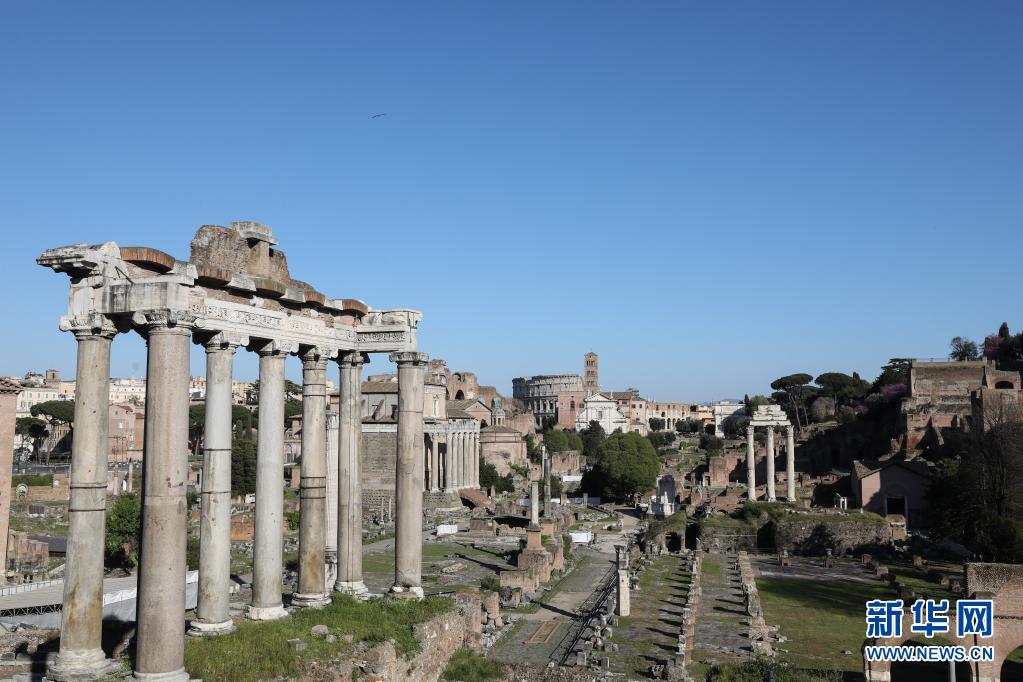 这是4月8日在意大利首都罗马拍摄的对游客关闭的古罗马广场。 根据意卫生部4月8日公布的数字,该国当日新增新冠确诊病例17221例,现存病例为544330例。 新华社记者 程婷婷 摄