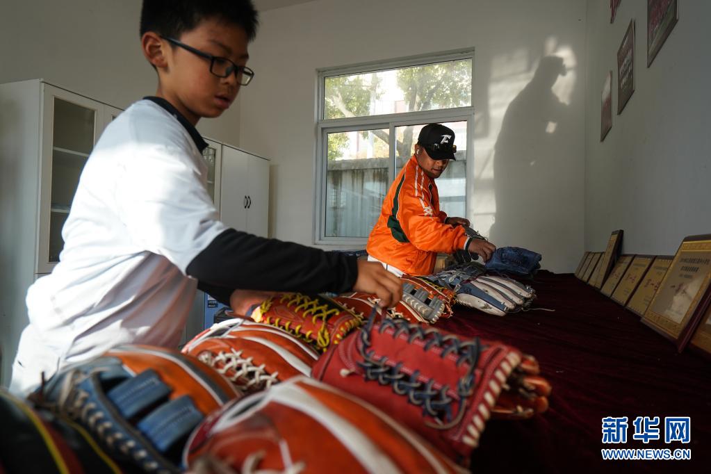 在仪征市新集中心小学,训练结束后,曾骏安(右)和队员整理装备(4月9日摄)。
