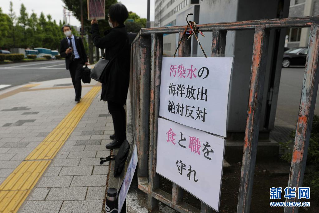 4月13日,抗议者在日本东京的首相官邸外反对福岛核污水排入大海。