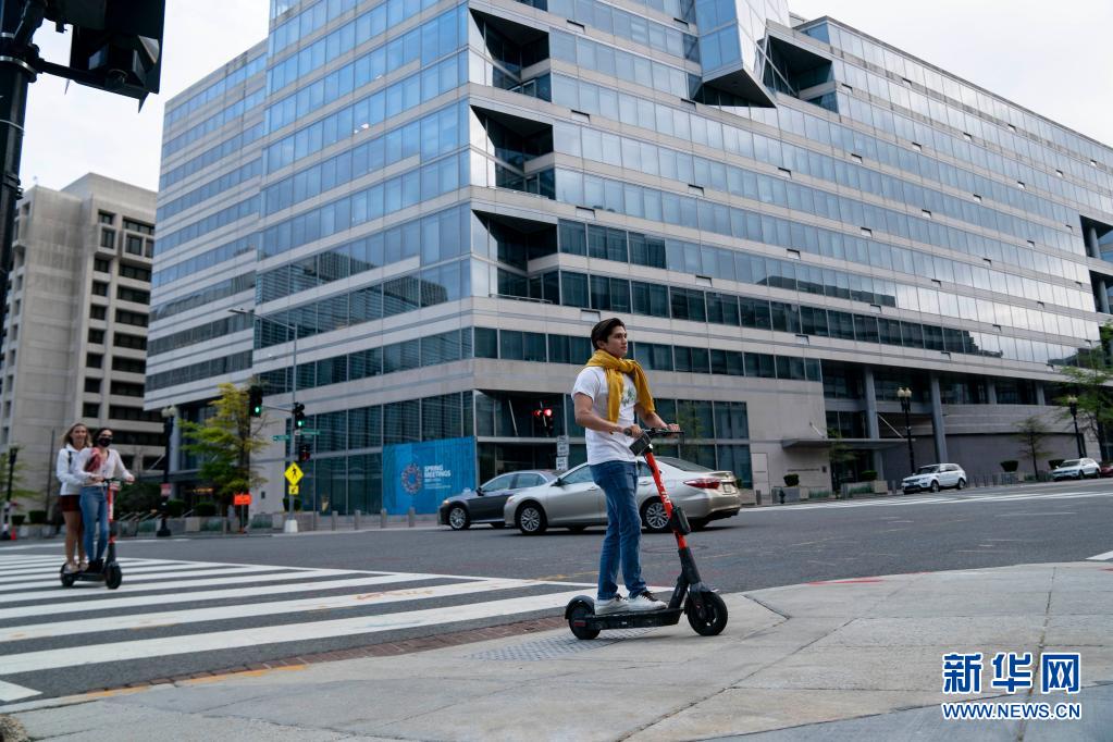 4月12日,人们从美国华盛顿的国际货币基金组织总部附近经过。