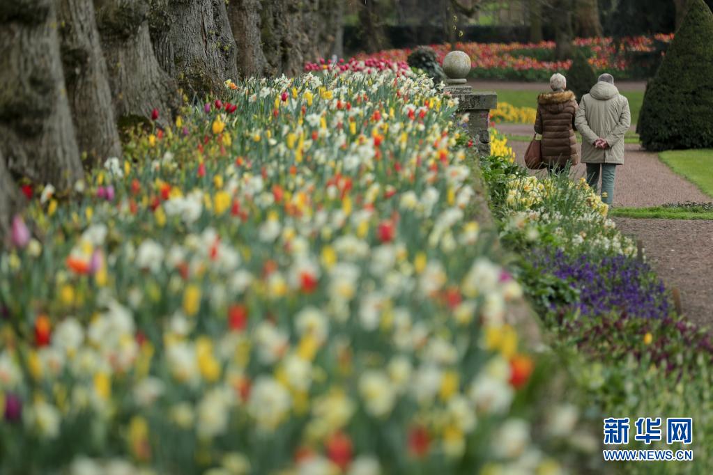 4月14日,民众在比利时布鲁塞尔以西的拜加登城堡参观花展。