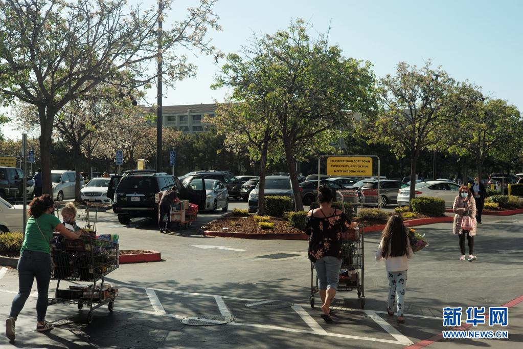 4月15日,人们推着购物车走出美国加利福尼亚州旧金山湾区的一家超市。 旧金山市目前处于加州四级防疫等级中相对较低的“橙色”等级。该市决定自4月15日起进一步开放商业和社会活动。在满足活动规模和人流控制要求前提下,人们可以参加室内外演出、私人聚会等活动。超过一定规模的室内外活动,参加者需要出示疫苗接种证明或核酸检测阴性证明。 新华社记者 吴晓凌 摄