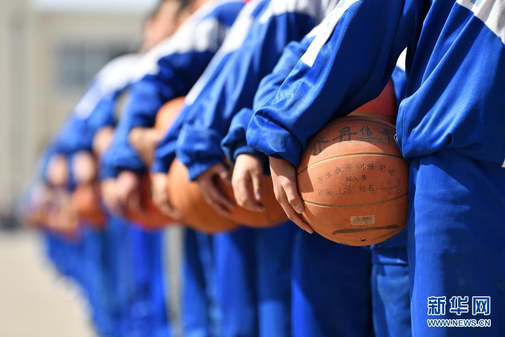 朝阳学校的学生们列队准备做篮球操(4月14日摄)。新华社记者 詹彦 摄
