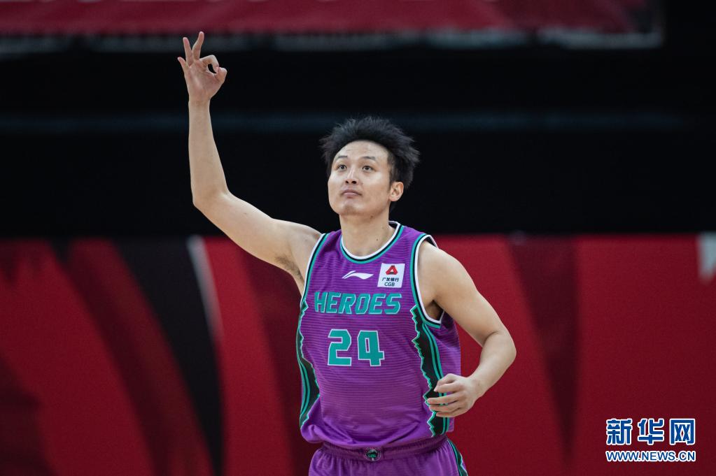 4月18日,山东西王队球员王汝恒在比赛中命中三分球后庆祝。 当日,在浙江诸暨举行的2020-2021赛季中国男子篮球职业联赛(CBA)季后赛四分之一决赛中,山东西王队以105比101战胜新疆伊力特队,晋级四强。 新华社记者 江汉 摄