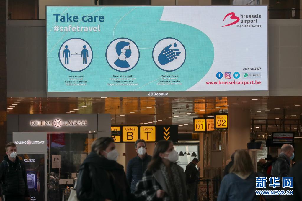 4月19日,旅客走在比利时布鲁塞尔市郊的扎芬特姆机场出发大厅。 比利时于19日起取消与欧盟成员国间的旅行禁令,但比利时与非欧盟成员的非必要旅行禁令仍将继续实施。旅行禁令取消后,将实施严格的检测和隔离制度:从疫情严重的红色区域返回的人员必须进行隔离,并在返回的第一天和第七天进行新冠病毒检测。 新华社记者 郑焕松 摄