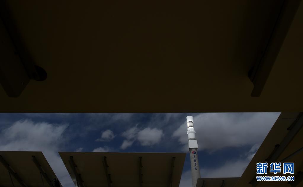 这是4月16日拍摄的位于青海省海南藏族自治州共和县光伏产业园内的一处塔式光热发电项目。