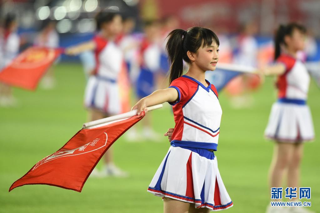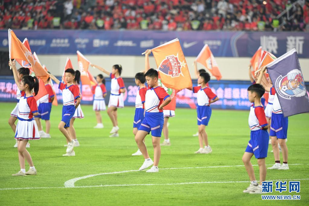 4月20日,演员在开幕式上表演。 当日,2021赛季中国足球协会超级联赛开幕式在广州天河体育中心体育场举行。 新华社记者 卢汉欣 摄
