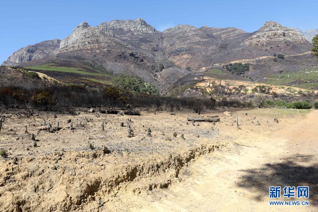 这是4月20日在南非开普敦弗雷德胡克地区附近拍摄的被火烧焦的植被。 南非著名旅游景点桌山国家公园20日宣布,经过3天努力,公园大火已于当天下午得到控制。官方数据显示,这场大火烧毁了约600公顷植被,至少11栋建筑受损,6名消防员在灭火中受伤。 新华社记者 吕天然 摄