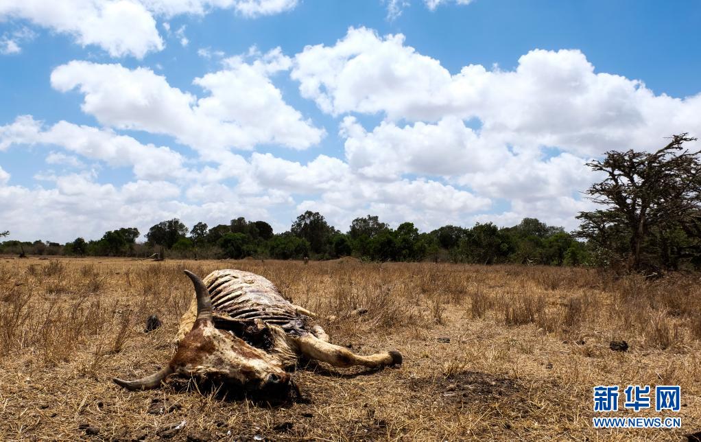 地球是人类共同生活的家园,人类只有一个地球。面对气候环境领域挑战,每个人都有义务行动起来,守护我们的蓝色星球。 2017年3月1日在遭受干旱的肯尼亚莱基皮亚郡,一头牛的尸骸躺在干旱的土地上。旱情严重影响了当地数百万民众的生产生活。 新华社记者 潘思危 摄