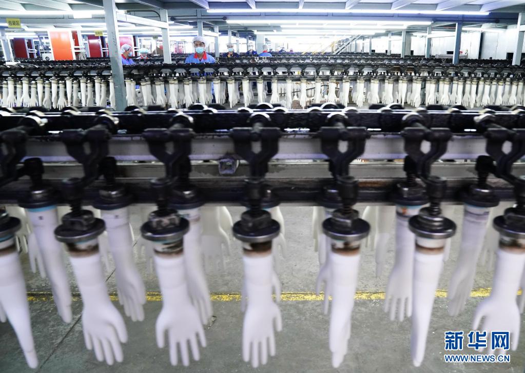 4月22日,滦南县一家医用手套企业的工人在生产线上工作。