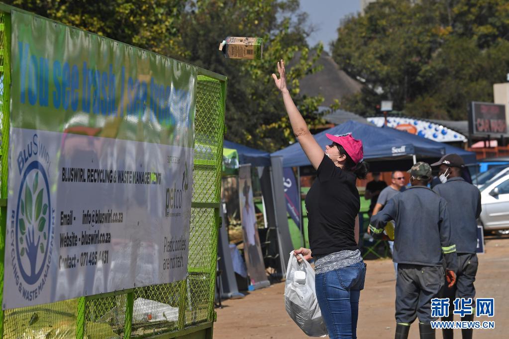4月22日,南非比勒陀利亚的志愿者将收集好的垃圾放到指定区域。 当日是世界地球日,南非比勒陀利亚一社区内上百名志愿者参加了捡拾垃圾、清洁河道、废物再利用等活动。今年世界地球日的主题是“修复我们的地球”。 新华社记者 陈诚 摄
