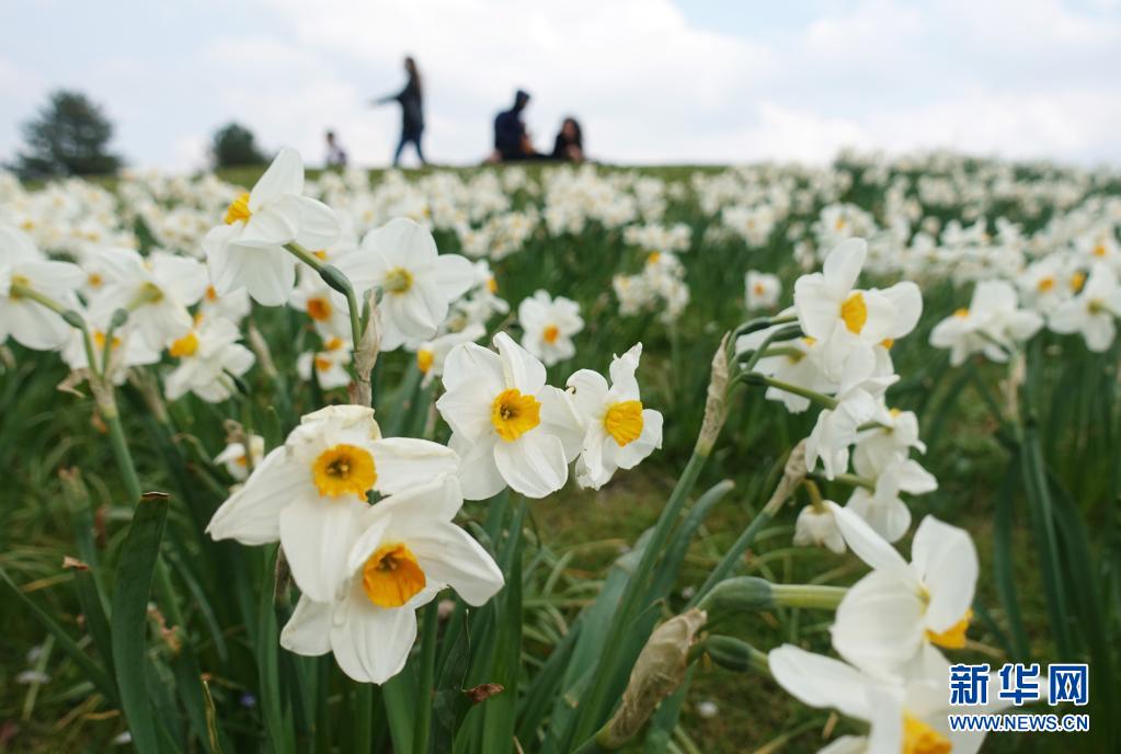 4月21日,法国巴黎一处公园的山坡上鲜花盛开。