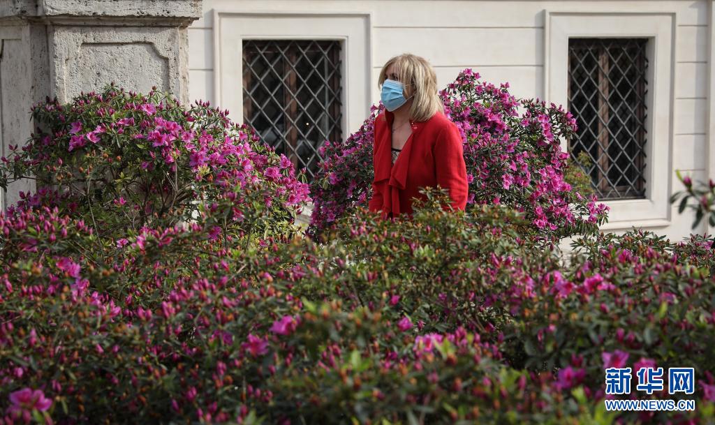 4月21日,一名女子佩戴口罩在意大利首都罗马出行。 意大利总理德拉吉的内阁21日公布了一项具体路线图,准备从4月26日起放松新冠疫情管控措施。 新华社记者 程婷婷 摄 |