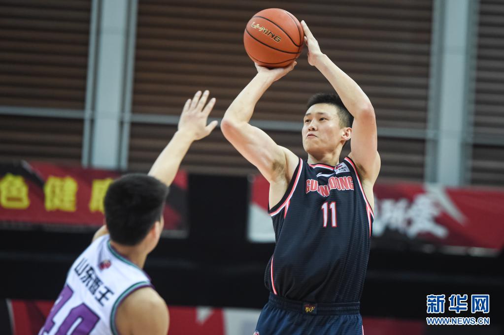 4月22日,广东东莞大益队球员周鹏(右)在比赛中投篮。 当日,在浙江诸暨举行的2020-2021赛季中国男子篮球职业联赛(CBA)季后赛半决赛中,广东东莞大益队以118比112战胜山东西王,以总比分2比0晋级总决赛。 新华社记者 江汉 摄 |