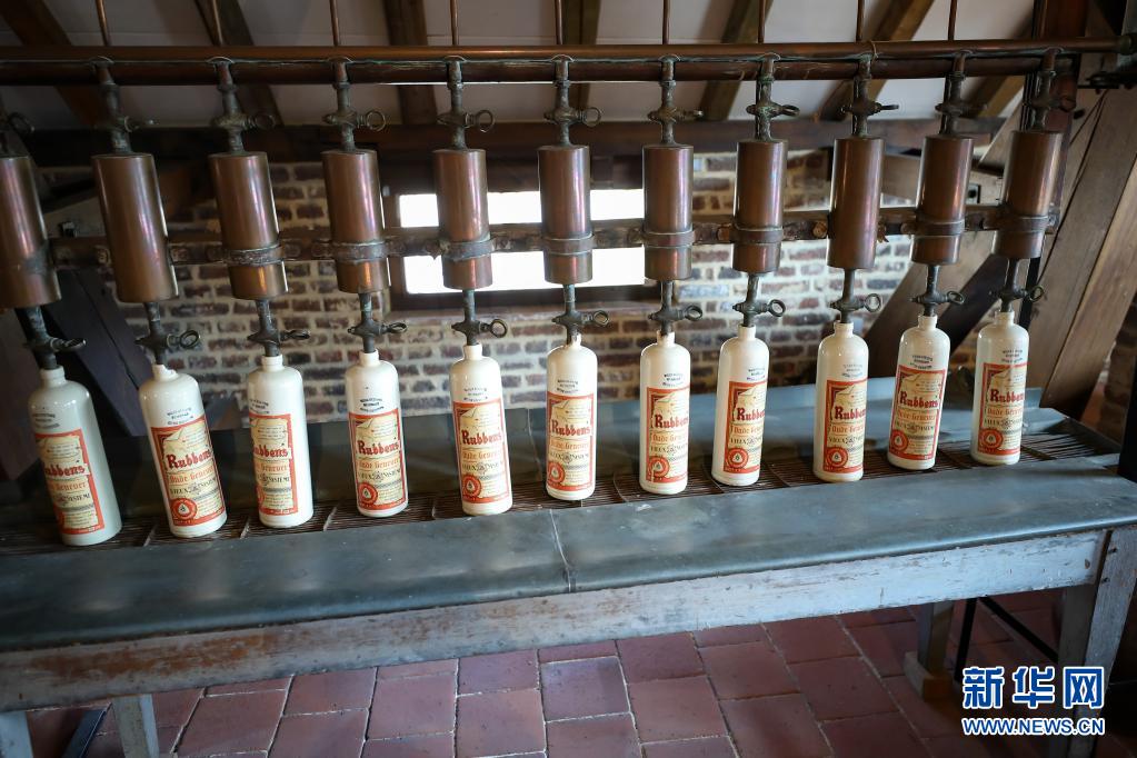 这是3月24日在比利时哈瑟尔特的仁内华博物馆拍摄的仁内华装瓶工艺演示。