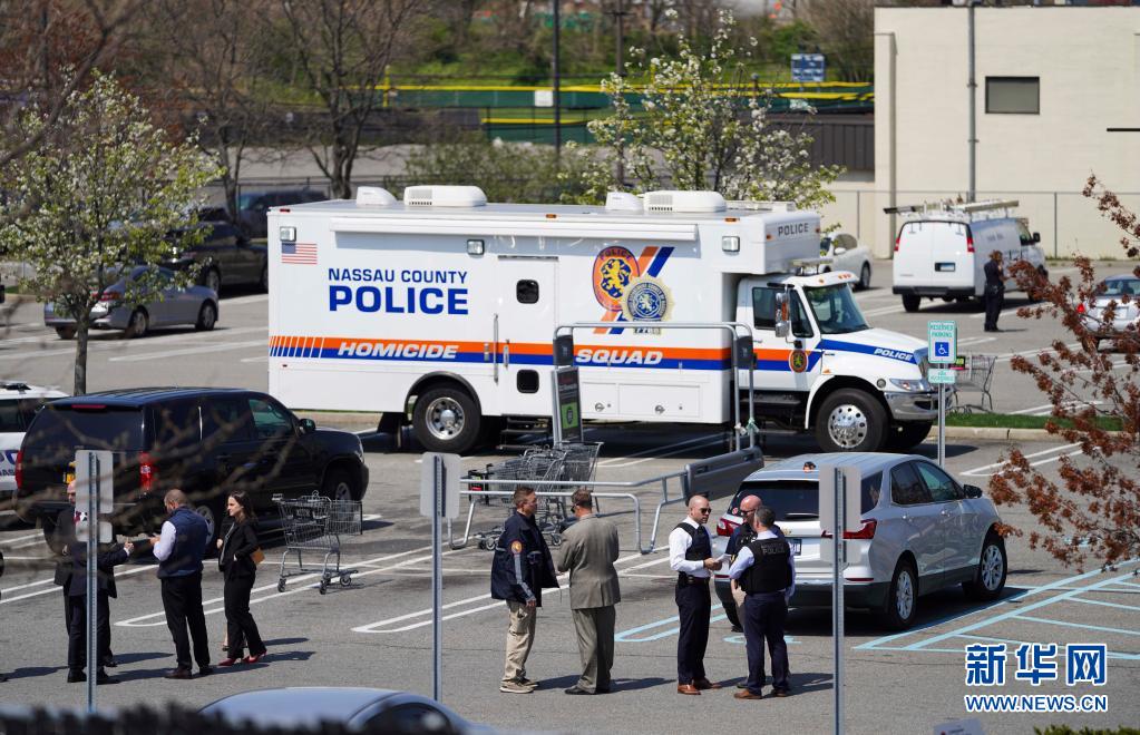 4月20日,在美国纽约州长岛地区西亨普斯特德,调查人员和警察在发生枪击事件的连锁超市外工作。新华社记者王迎摄