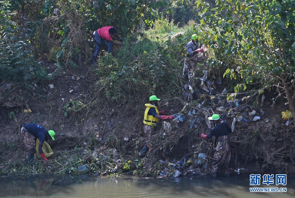 4月22日,南非比勒陀利亚的志愿者在河道边清理垃圾。 当日是世界地球日,南非比勒陀利亚一社区内上百名志愿者参加了捡拾垃圾、清洁河道、废物再利用等活动。今年世界地球日的主题是“修复我们的地球”。 新华社记者 陈诚 摄