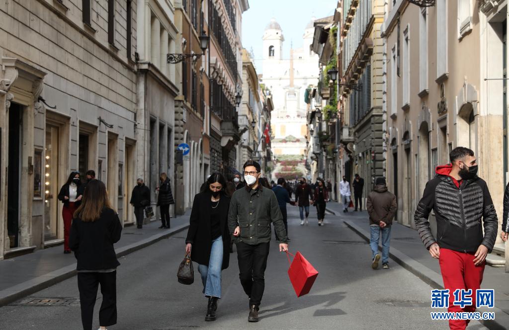 4月21日,人们在意大利首都罗马逛街购物。 意大利总理德拉吉的内阁21日公布了一项具体路线图,准备从4月26日起放松新冠疫情管控措施。 新华社记者 程婷婷 摄