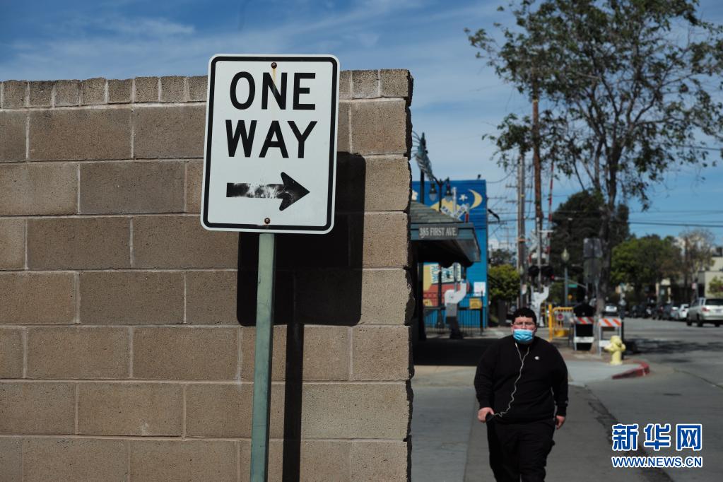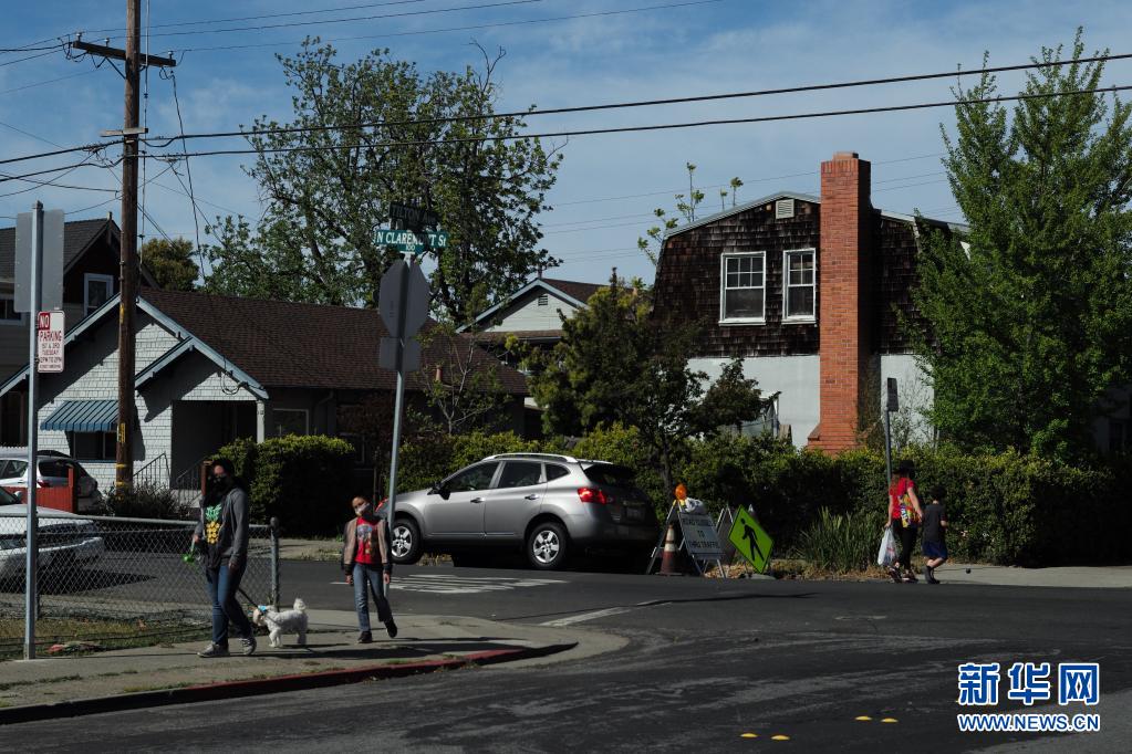 4月26日,行人从美国加利福尼亚州北部小城圣马特奥的街头走过。 美国加利福尼亚州共有四级防疫等级,从高至低依次为“紫、红、橙、黄”。美国加州旧金山湾区目前全部处于“橙色”或“红色”等级。圣马特奥市所在的旧金山湾区圣马特奥县处于“橙色”等级。 新华社记者 吴晓凌 摄