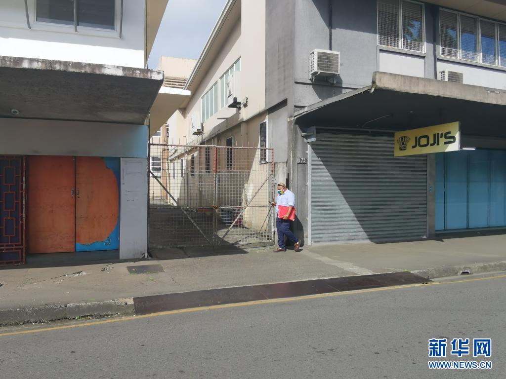 4月29日,一名戴着口罩的男子走在斐济苏瓦市中心空空荡荡的街道上。 斐济连日来新冠疫情持续恶化,为进一步查清传染源头、遏制疫情传播,斐济政府25日宣布首都苏瓦及周边地区将从26日凌晨4时开始实施为期14天的全面封锁。 新华社记者 张永兴 摄