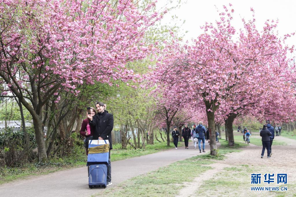 德国首都柏林的“樱花小径”近日樱花盛开,吸引了不少游客在周末前来观赏。