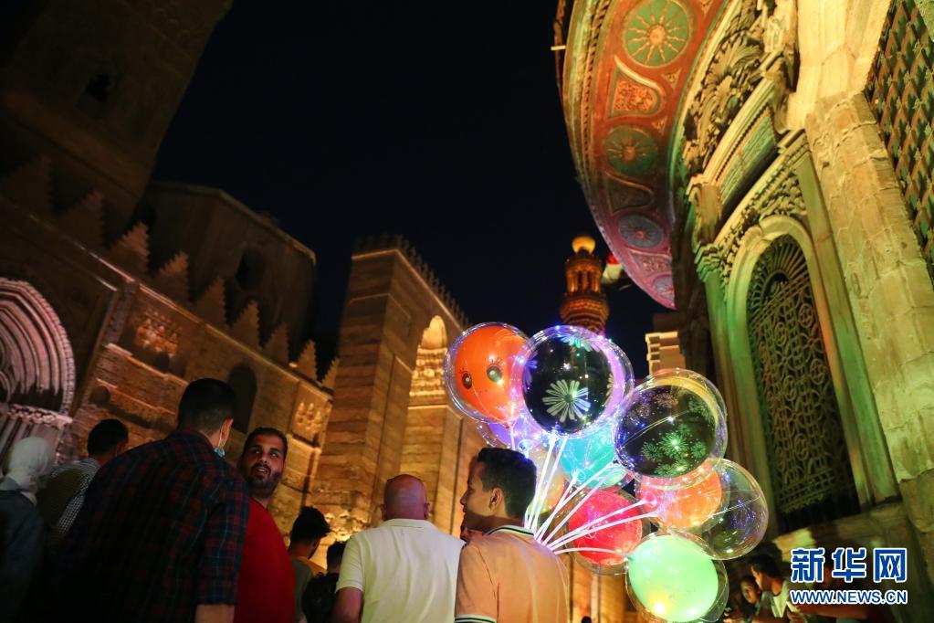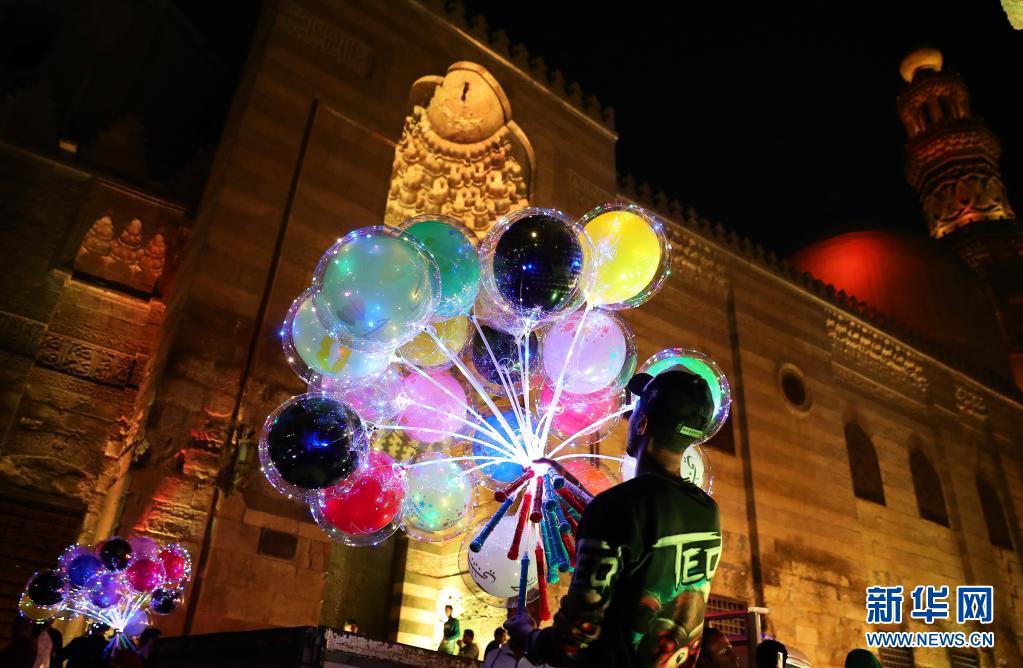4月29日,一名男子在埃及开罗老城区的哈里里市场卖气球。 斋月期间的夜晚,埃及开罗老城区的哈里里市场人头攒动,结束一天的斋戒后,人们在此享受美食,休闲购物,享受愉快的夜生活。 新华社记者 王东震 摄 |