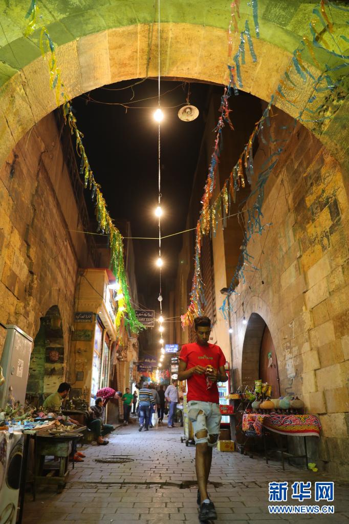 4月29日,人们在埃及开罗老城区的哈里里市场游玩。 斋月期间的夜晚,埃及开罗老城区的哈里里市场人头攒动,结束一天的斋戒后,人们在此享受美食,休闲购物,享受愉快的夜生活。 新华社记者 王东震 摄