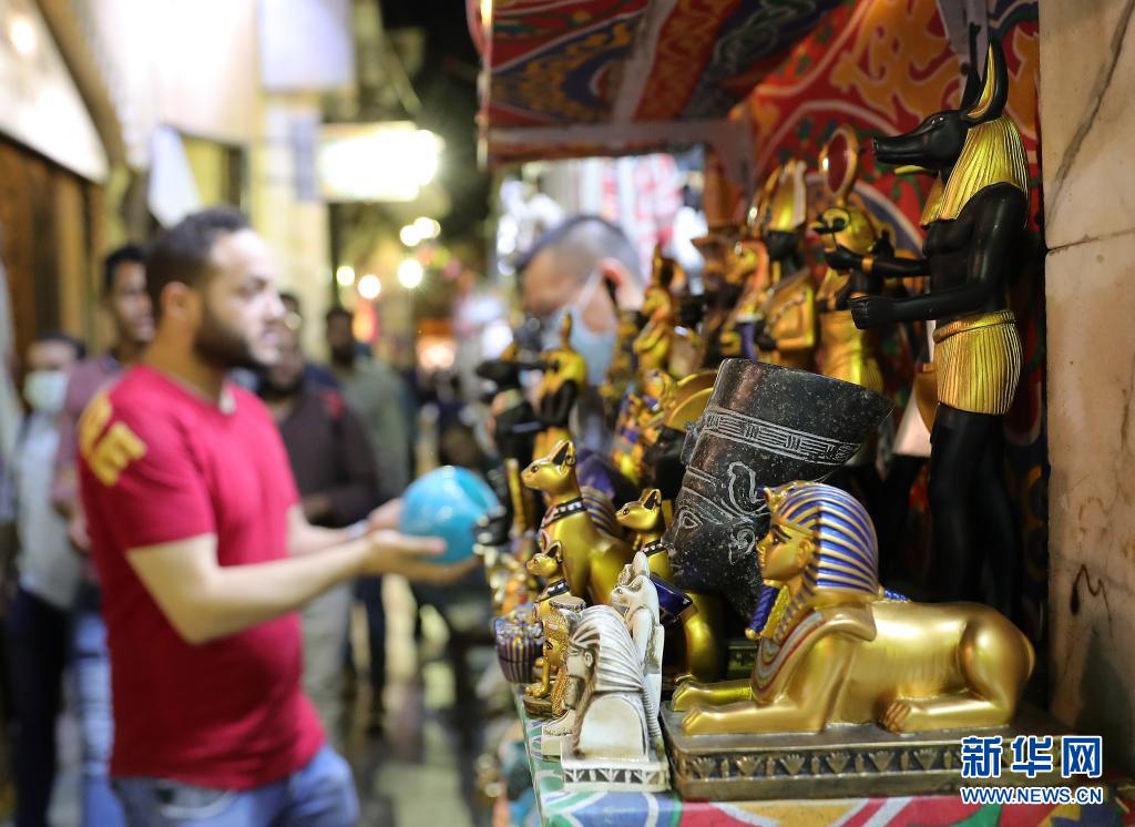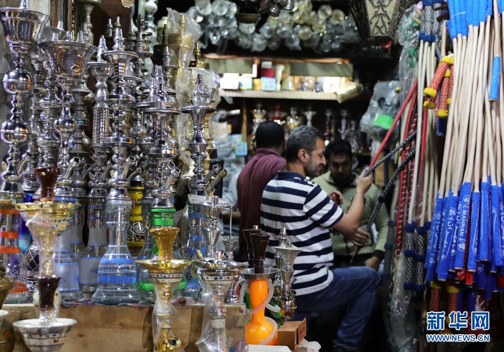 这是4月29日拍摄的埃及开罗老城区哈里里市场一家商铺内景。 斋月期间的夜晚,埃及开罗老城区的哈里里市场人头攒动,结束一天的斋戒后,人们在此享受美食,休闲购物,享受愉快的夜生活。 新华社记者 王东震 摄