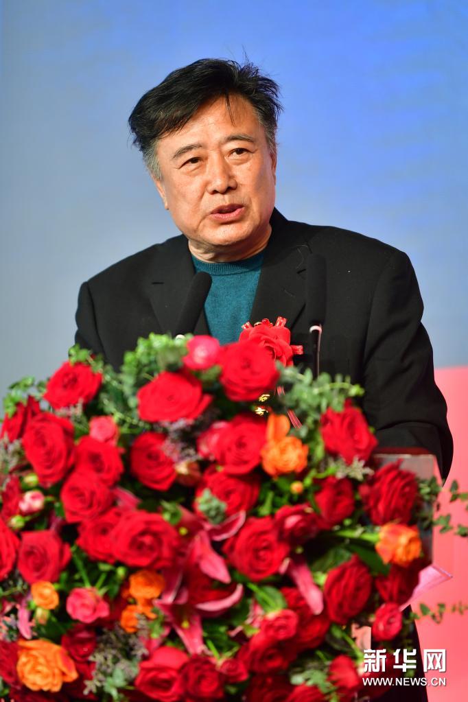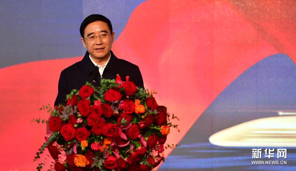 5月6日,导演陈国军在电影《高铁作证》开机仪式上介绍电影情况。新华社记者 陈斌 摄