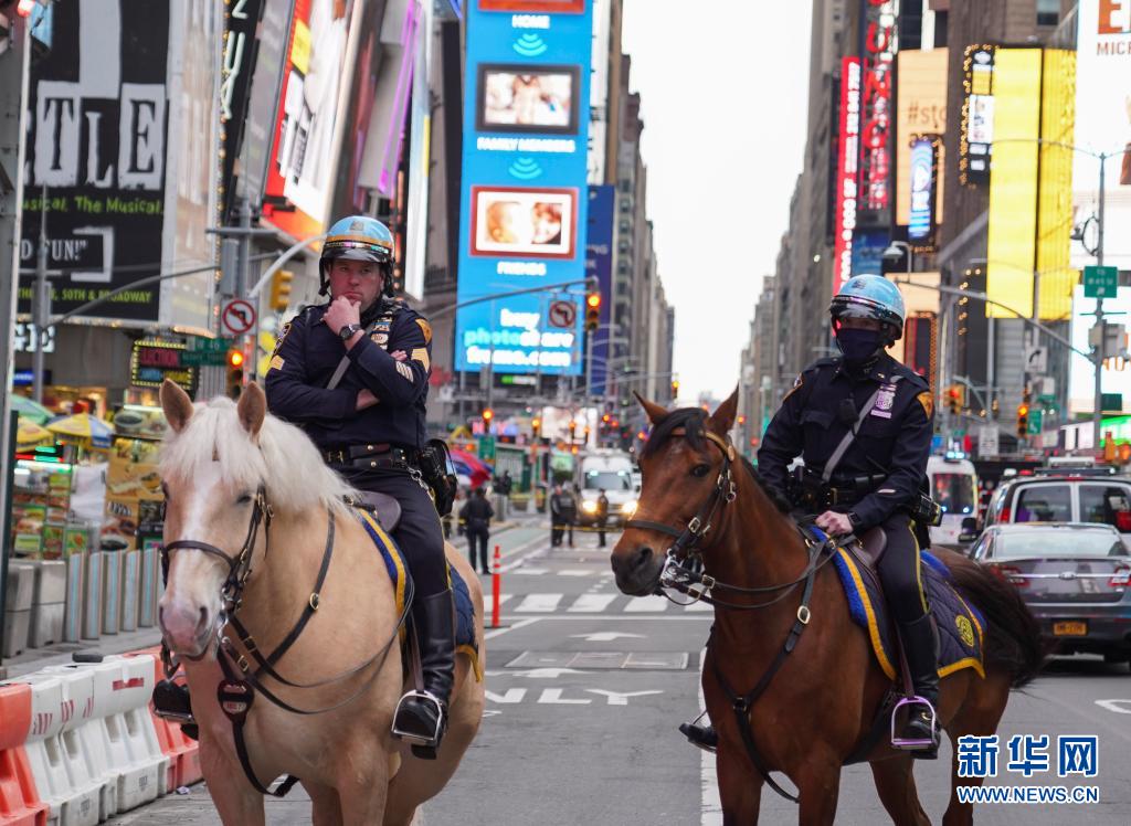 5月8日,在美国纽约时报广场,警察封锁事发现场附近的道路。