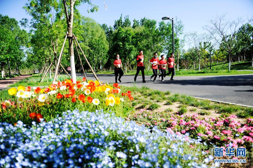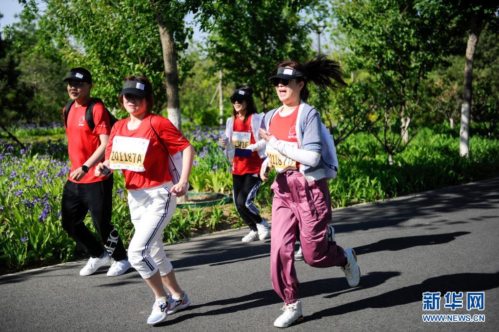 5月8日,参赛选手在比赛途中奔跑。 当日是世界红十字日,国内首个以应急救护为主题的团队式运动公益赛事——“红气球”定向越野赛暨京津冀应急救护达人大赛在北京通州城市绿心公园举办。此次公益活动由中国红十字基金会、北京市红十字会联合主办,来自全国各地的800余名队员组成的170余支队伍挑战徒步21公里,途中完成包括急救知识问答、心肺复苏急救操作等6项应急救护任务。本次活动旨在提高公众的应急救护能力。新华社记者 刘勇贞 摄