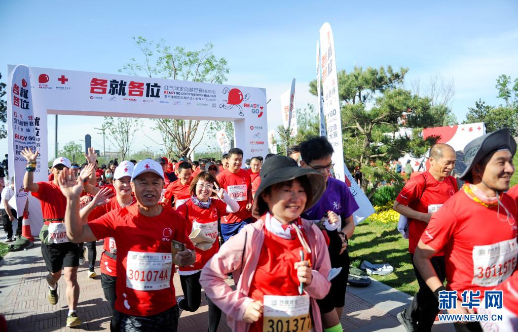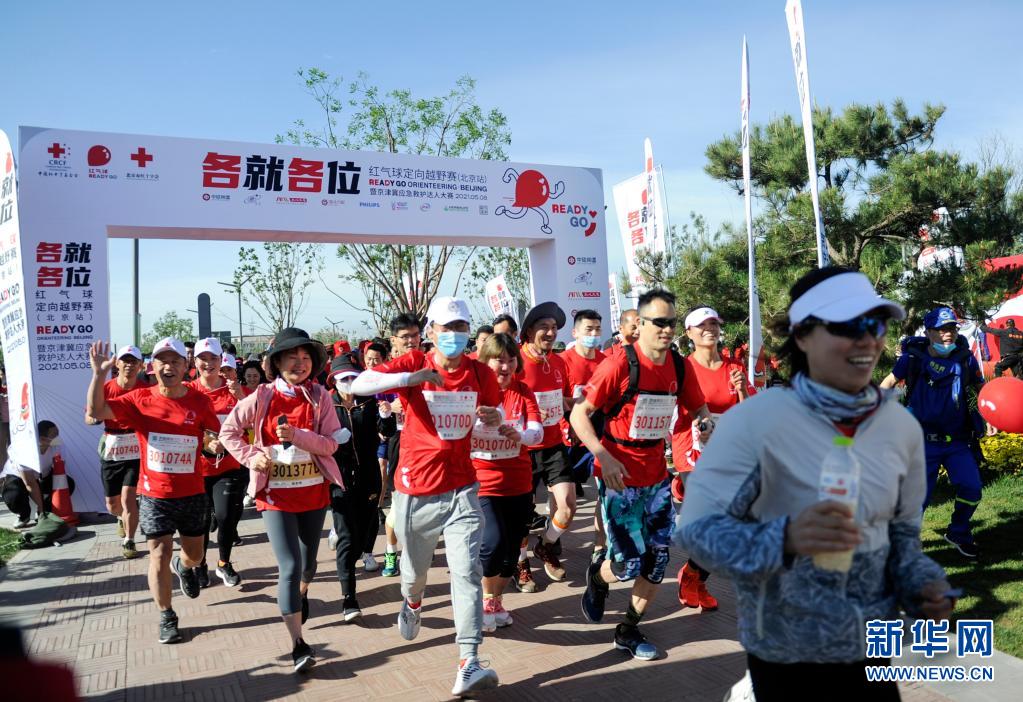 5月8日,参赛选手在起点处出发。 当日是世界红十字日,国内首个以应急救护为主题的团队式运动公益赛事——“红气球”定向越野赛暨京津冀应急救护达人大赛在北京通州城市绿心公园举办。此次公益活动由中国红十字基金会、北京市红十字会联合主办,来自全国各地的800余名队员组成的170余支队伍挑战徒步21公里,途中完成包括急救知识问答、心肺复苏急救操作等6项应急救护任务。本次活动旨在提高公众的应急救护能力。新华社记者 刘勇贞 摄