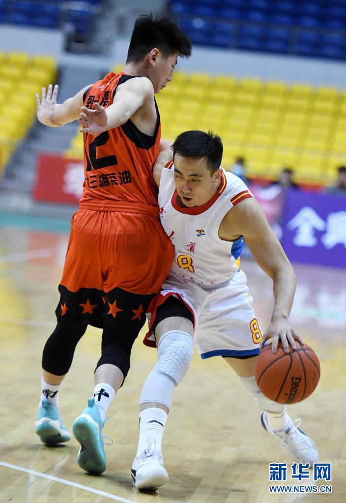 5月10日,湖南队球员甄子晨(左)在比赛中防守辽宁队球员赵继伟进攻。