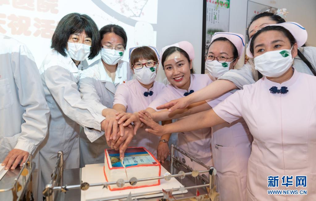 5月11日,在北京按摩医院举行的国际护士节庆祝活动上,护士们领取奖章后合影。 在第110个国际护士节即将到来之际,隶属于中国残疾人联合会的北京按摩医院举行庆祝活动,通过表彰先进、文艺演出、现场互动等形式,表达对一线护理人员的致敬与问候。 新华社记者 才扬 摄
