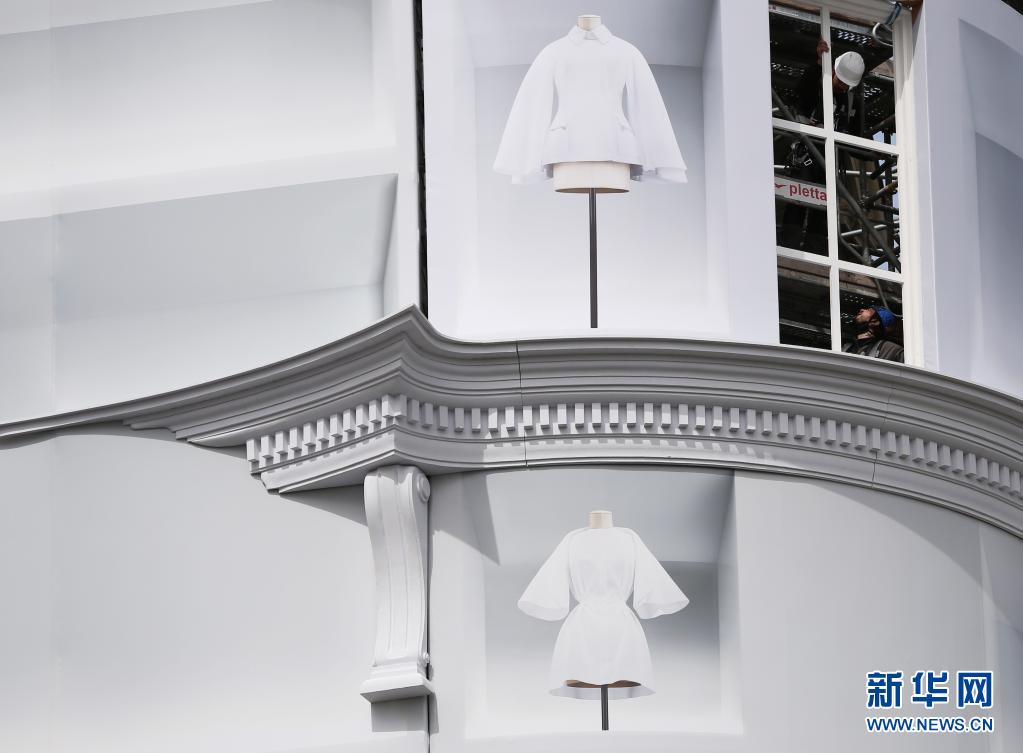 5月12日,在法国巴黎香榭丽舍大街,工人装修商店外墙。