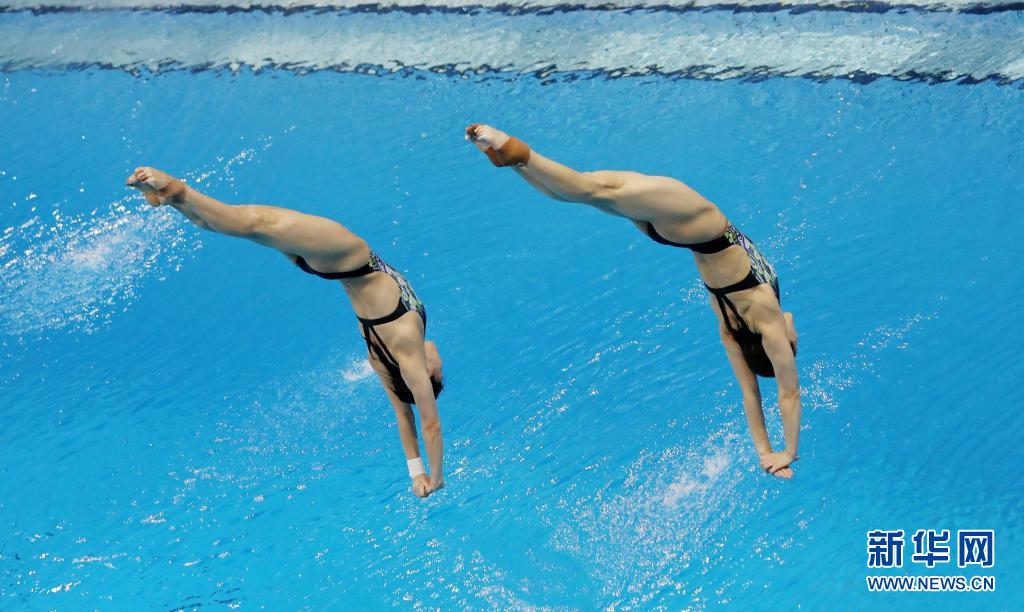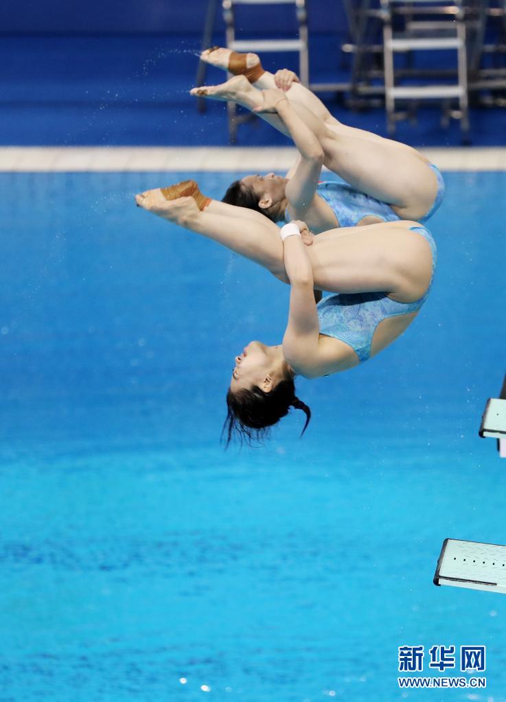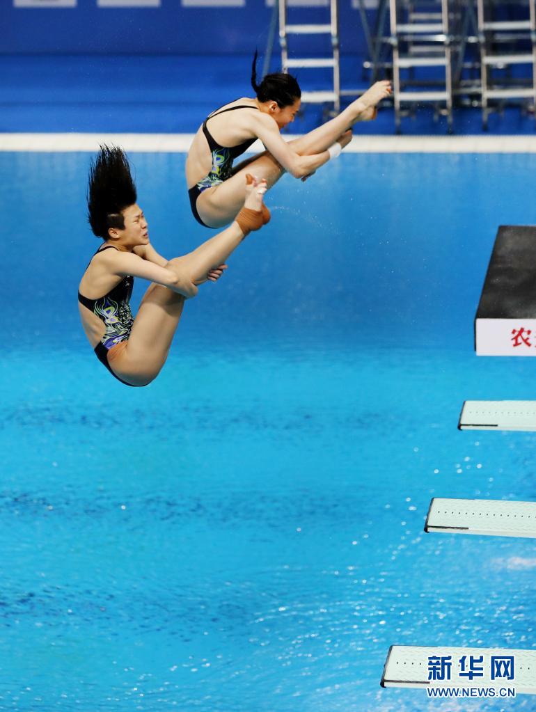 5月11日,王涵/施廷懋在比赛中。 当日,在上海举行的2021年全国跳水冠军赛暨东京奥运会选拔赛、全运会跳水资格赛女子双人3米跳板决赛中,来自河北209的王涵和重庆的施廷懋组合,以总成绩346.80分夺得冠军,广西组合韦颖和黄小惠获得亚军,广东海印队组合王伟莹和罗春晓组合获得季军。 新华社记者 方喆 摄