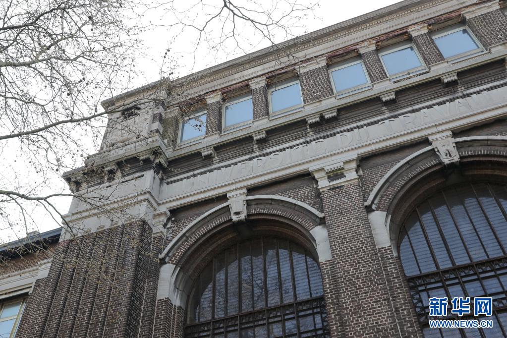 这是4月20日在比利时南部城市沙勒罗瓦拍摄的沙勒罗瓦劳动大学建筑。