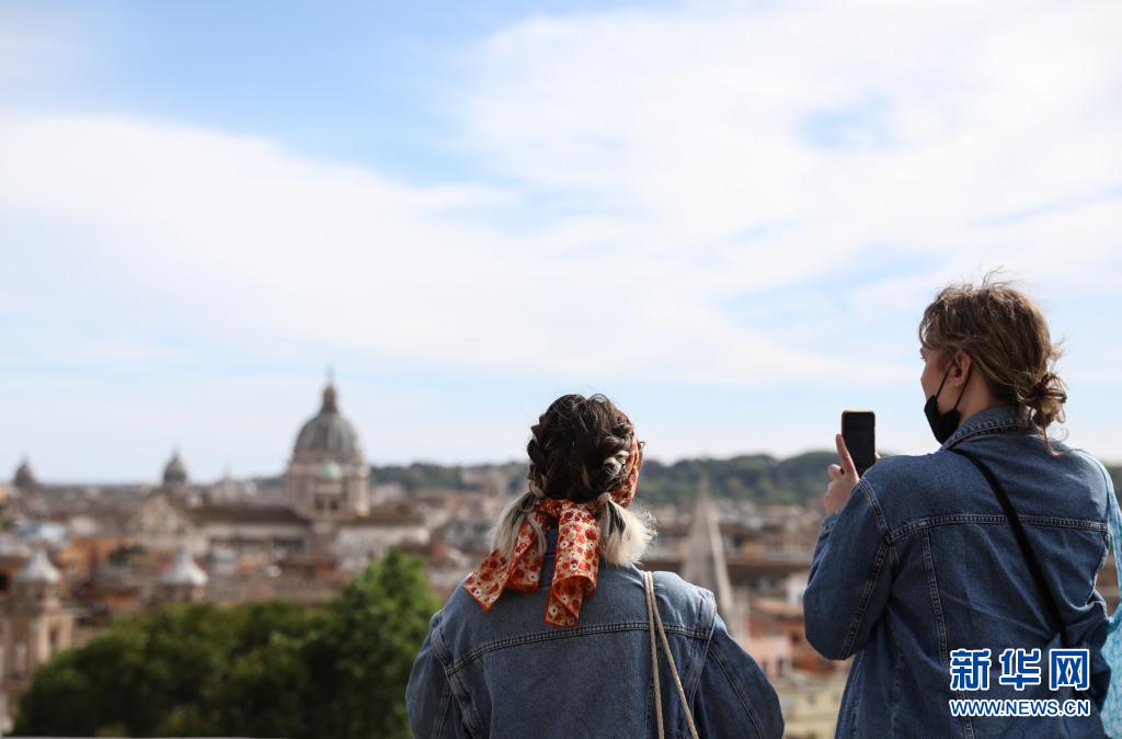5月15日,人们在意大利首都罗马的一处观景台欣赏风景。 意大利16日正式对部分国家的游客开放边境。 新华社记者 程婷婷 摄