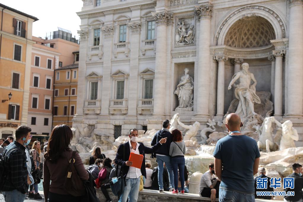 5月15日,游客在意大利首都罗马的许愿池前游览。 意大利16日正式对部分国家的游客开放边境。 新华社记者 程婷婷 摄