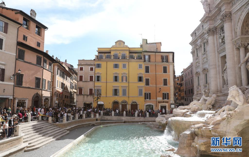 5月15日,人们在意大利首都罗马的许愿池前游览。 意大利16日正式对部分国家的游客开放边境。 新华社记者 程婷婷 摄
