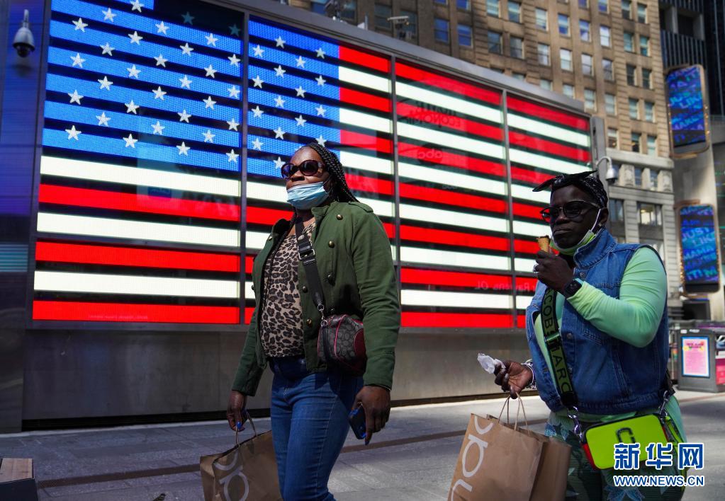 5月14日,人们走在美国纽约时报广场。 美国疾病控制和预防中心13日针对新冠疫情发布新指南,不再建议已完成新冠疫苗接种者参加室内、室外活动时戴口罩。 新华社记者 王迎 摄