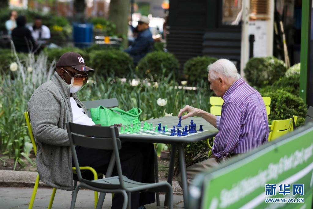 5月14日,人们在美国纽约布赖恩特公园下棋。 美国疾病控制和预防中心13日针对新冠疫情发布新指南,不再建议已完成新冠疫苗接种者参加室内、室外活动时戴口罩。 新华社记者 王迎 摄 |