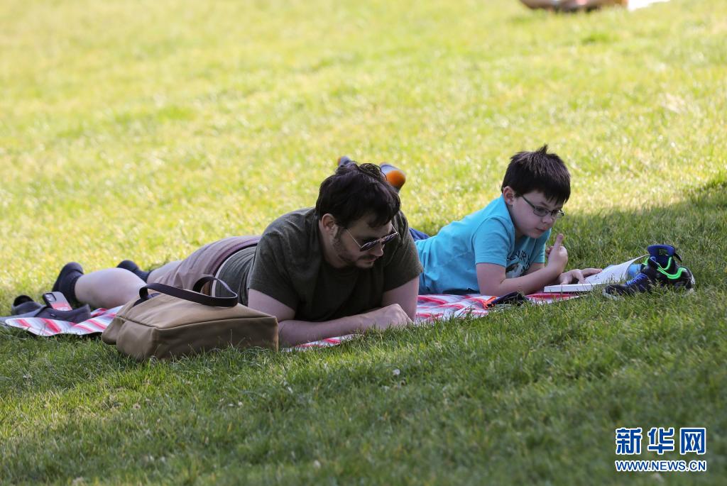 5月14日,人们在美国纽约中央公园读书。 美国疾病控制和预防中心13日针对新冠疫情发布新指南,不再建议已完成新冠疫苗接种者参加室内、室外活动时戴口罩。 新华社记者 王迎 摄