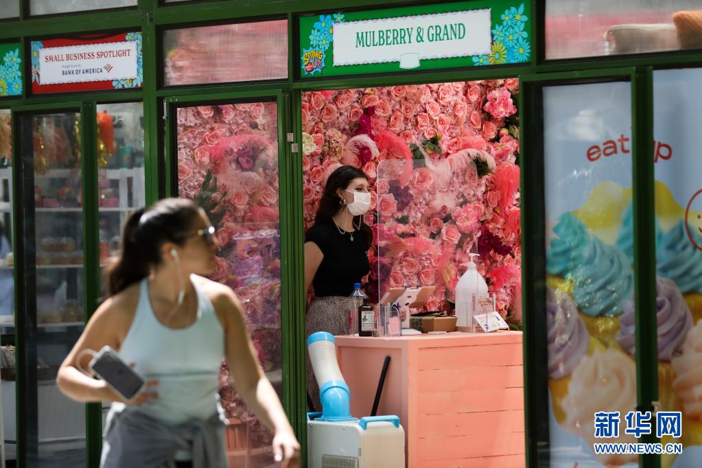 5月14日,店员在美国纽约一家店铺等待顾客。 美国疾病控制和预防中心13日针对新冠疫情发布新指南,不再建议已完成新冠疫苗接种者参加室内、室外活动时戴口罩。 新华社记者 王迎 摄