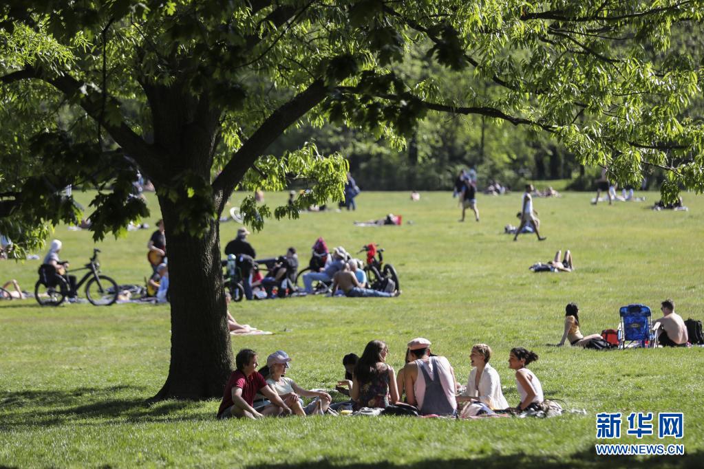 5月14日,人们在美国纽约中央公园休闲。 美国疾病控制和预防中心13日针对新冠疫情发布新指南,不再建议已完成新冠疫苗接种者参加室内、室外活动时戴口罩。 新华社记者 王迎 摄